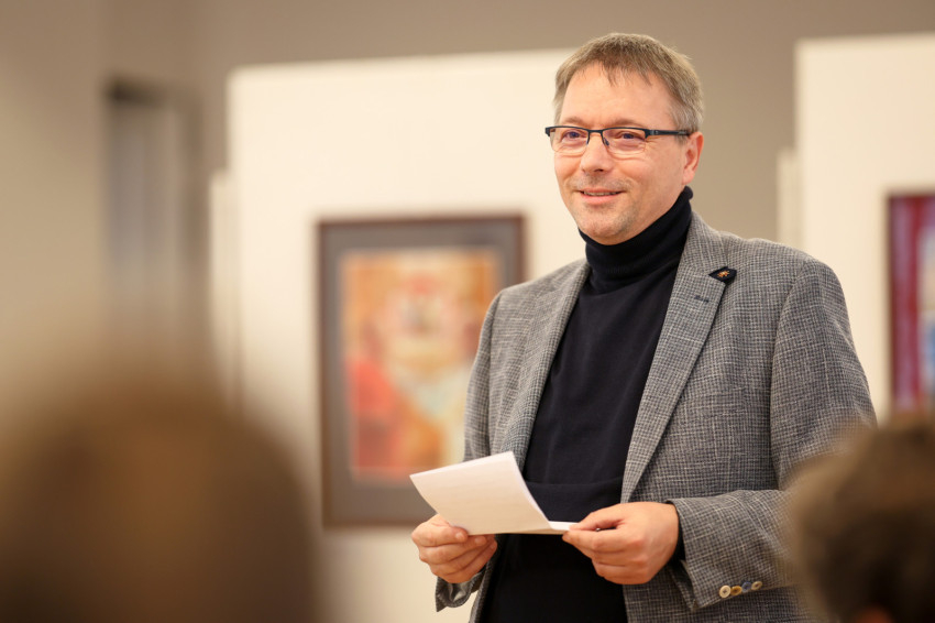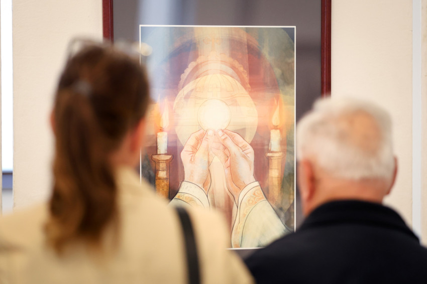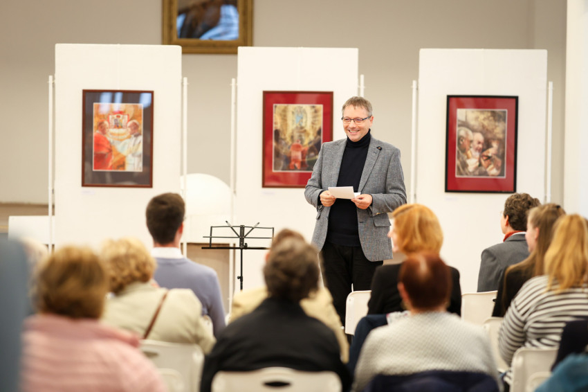 A történész rámutatott: Mindszenty Józsefről nagyon nehéz jó portrét alkotni. Rengeteg portré, szobor készült róla, de csak nagyon kevés közülük az igazán kiemelkedő alkotás. Fecske Orsolya itt kiállított képei ezek közé tartoznak.