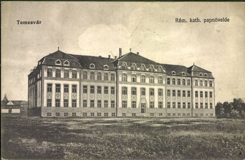 A kifejezetten a papképzést szolgáló épület története Temesvár egykori polgármestere, Telbisz Károly és Glattfelder Gyula csanádi püspök 1913. július 4-én kötött szerződéskötésekor kezdődött. A kor sajtója e két meghatározó egyéniség közös érdemeként említi a korszerű teológiai intézet létrehozását: „Temesvár ifjú püspöke, Temesvár búcsúzó nagy polgármestere lehetővé tették, hogy új alma mater, új szeminárium új időknek neveljen papokat.”