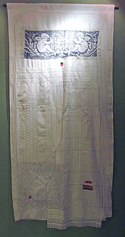 Az oltárterítőkben ugyanezekkel az anyagokkal egy másfajta gondolatmenet jelenik meg.