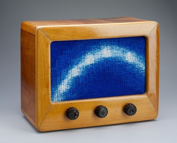 Az 1950-es évek néprádiója szövete helyébe az Európai Unió Mária-jelvényét tettem: a kék háttér előtt megjelenő tizenkét csillagos koszorút a Mária Rádió hangjelzésével.