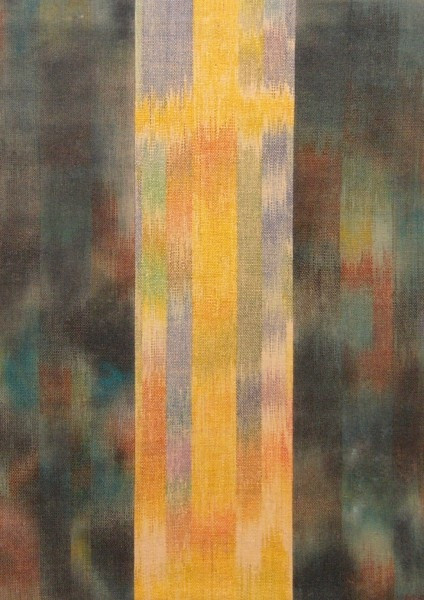 A Távol-Keleten, Ázsiában, Észak-Afrikában ma is használati textíliák ornamentikával való díszítésére szolgáló ikat technikát sajátos, általam kifejlesztett módon képalkotásra alkalmazom.