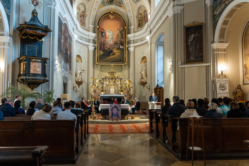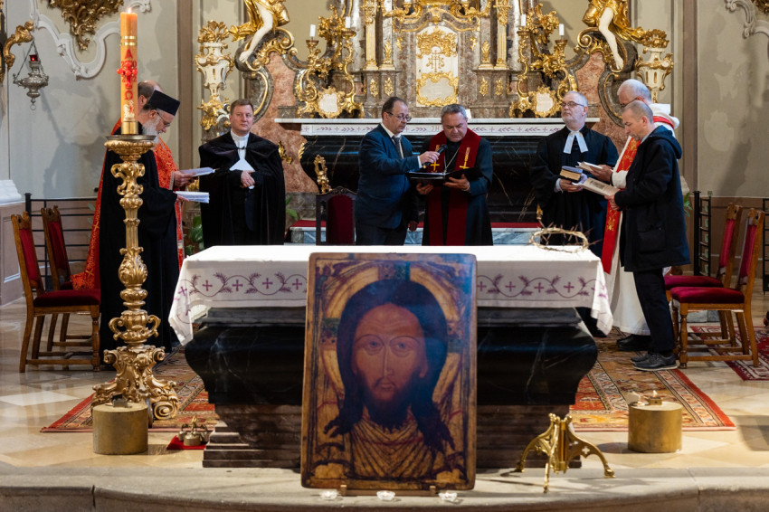 A templom oltára előtt az imaóra idejére elhelyeztek egy, a közösség ikonfestő műhelyében készült ikont és a szentély előtt egy fiatal férfi fényképét, aki a Sant’Egidio közösség tagja volt. Floribert Bwana Chui, egy kongói fiatalember, aki utcagyerekekkel foglalkozott. Munkáját tekintve vámtiszt volt, 2007-ben csempészek ölték meg, mert nem teljesítette követelésüket. 2025-ben boldoggá avatják, jelként Afrika és a világ számára, hogy egy fiatal keresztény mártírként legyőzte a pénz és a hatalom bálványát.