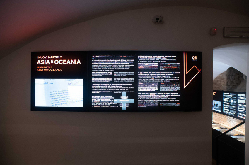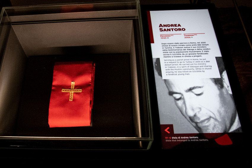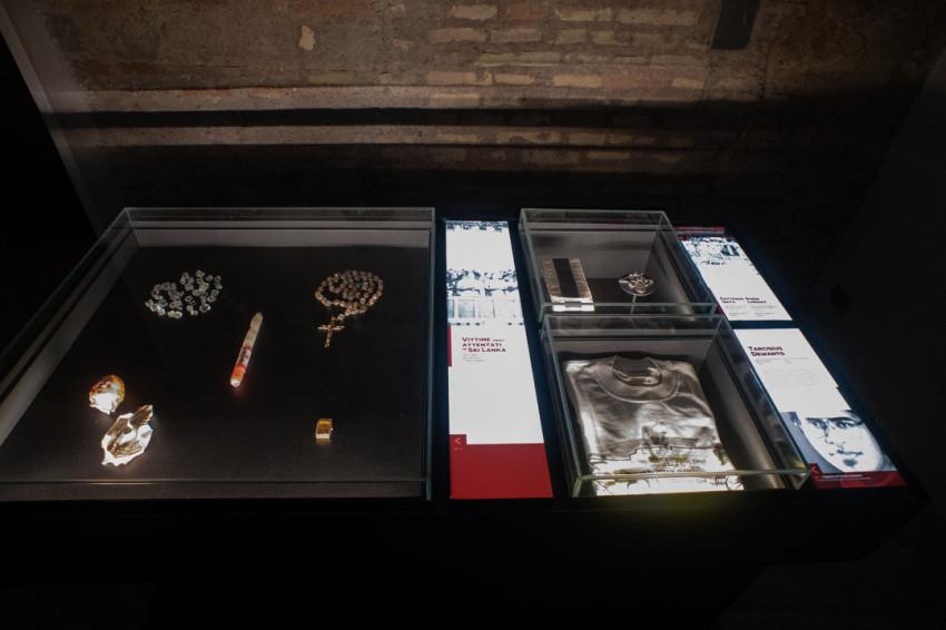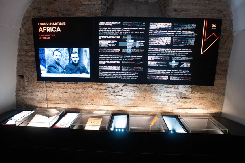 A kriptában kialakított múzeumban számos magyarázatot találunk olasz és angol nyelven, részletes térképeket látunk, korabeli videókat nézhetünk. A vitrinekben láthatjuk a vértanúk személyes tárgyait, például Boldog Enrique Angelelli Carletti, az északnyugat-argentinai La Rioja püspöke stóláját, akit 1976. augusztus 4-én, Punta de los Llanos közelében katonák öltek meg, a gyilkosságot autóbalesetnek álcázva. Az volt a bűne, hogy a leggyengébbek, a bányászok és a mezőgazdasági munkások oldalán állt. Láthatjuk a San Salvadorban 1980. március 24-én egy halálosztag által meggyilkolt Szent Óscar Arnulfo Romero érsek miseruháját. Utolsó szavai ezek voltak, amikor felmutatta az Eucharisztiát: „Ez az emberekért feláldozott test és vér tápláljon minket is, hogy Krisztushoz hasonlóan testünket és vérünket adjuk át a szenvedésnek és a fájdalomnak.”