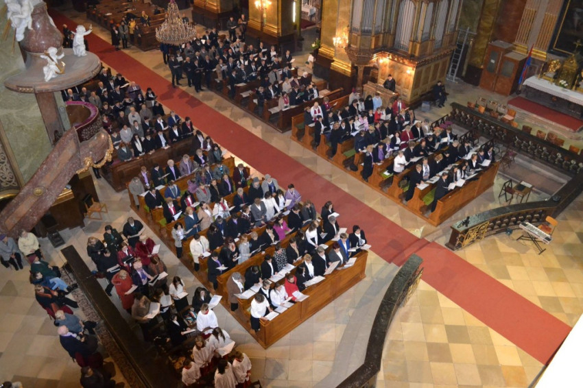 Böcskei László püspök köszöntötte a több mint háromszáz – egyházzene területén tevékeny – vendéget, hangsúlyozva szolgálatuk és az egyházzene fontosságát.