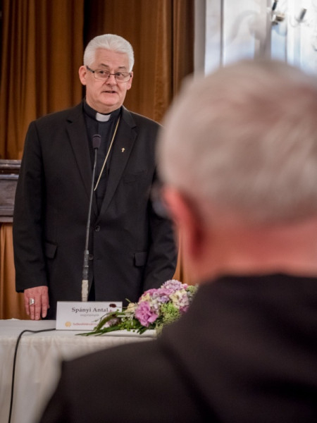 A Szent István teremben tartott díjátadó ünnepségen Spányi Antal püspök köszöntötte a megjelenteket. Kiemelte: a keresztény embernek örök értékeket kell képviselnie, hordoznia és megvalósítania. Az életet az ember többféleképpen élheti. Látjuk, hányan vannak, akik hagyják, hogy az élet valahogy elmúljon fölöttük; mintegy napról napra élnek. Nem azért, mert bárki erre kényszeríti őket, hanem mert nincs igazi tartalma életüknek, nem találnak igazi kapaszkodókat, értékeket; de legfőképpen talán azért, mert nem merik, nem tudják az életüket odaadni. Az Úr Jézus szavai szerint: aki életét meg akarja tartani, az elveszíti azt, aki oda meri adni, aki el meri azt veszíteni, megtalálja. Fontos kérdés, hogy mit akar kezdeni az életével az ember, s ha elfogadja, hogy az életnek célja van, útja valahova elvezet, akkor azt is megérti, hogy értékek között kell döntenie – mondta a megyéspüspök.