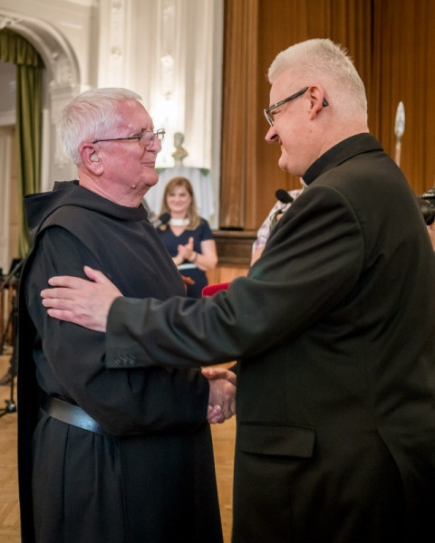 Az ünnepség végén megszólalt a díjazott is. „Sose relativizáljuk azt, ami abszolút, és sose abszolutizáljuk azt, ami relatív. Tartsuk fontosnak, ami fontos, és tartsuk lényegtelennek azt, ami lényegtelen” – hangsúlyozta Richárd atya. Hozzátette: „Tudni kell elengedni. Kell hogy legyenek igazodási pontok, de amikor az ember elengedi például a felelősséget, akkor megszűnik az az állapot, hogy hivatalból jó példát kell adni. Ha nincs hivatalban az ember, akkor marad, hogy emberségből kell példát adni. Az ember nem idegen ezen a földön, és ez a gondolat hozzásegíti ahhoz, hogy könnyebben elengedjen sok mindent. Mert az Isten van valamiképpen minden gondolatnak az alján. Hálás vagyok mindazoknak, akiknek a vállára állhattam, és hálás vagyok mindazoknak a rendtársaknak és munkatársaknak, akikkel kéz a kézben együtt küzdhettünk és tanúi lehettünk a csodáknak. Mert igenis vannak csodák.”