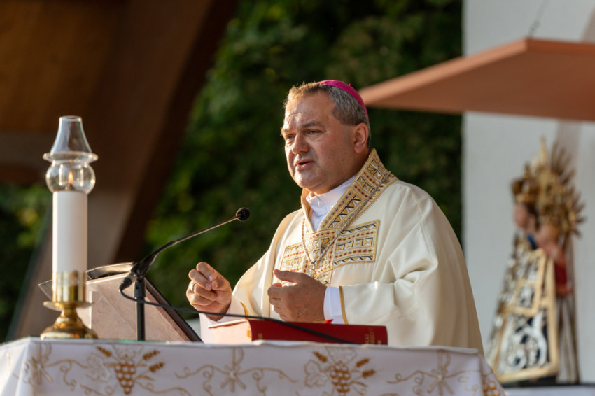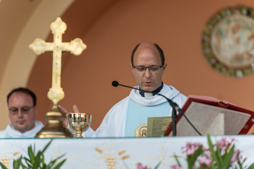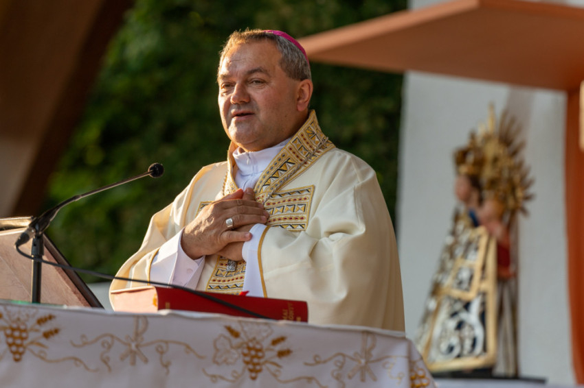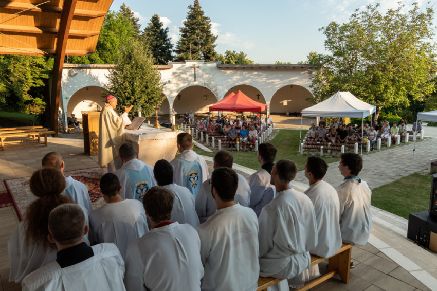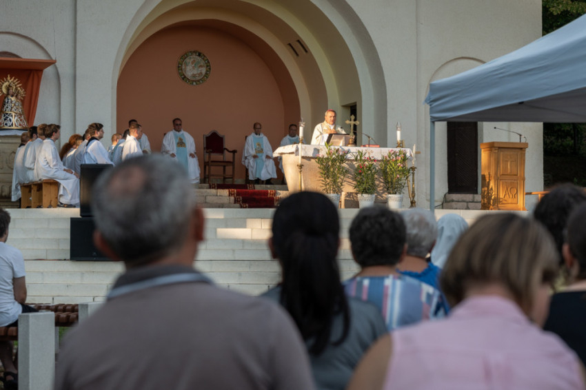 A főpásztor a nap zárásaként szentmisét mutatott be a kegyhely szabadtéri oltáránál.