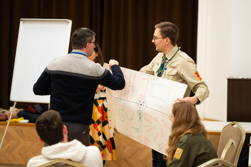 A nap második felében érkezett el a résztvevők közössége „a Lélekben való beszélgetés” utolsó, konszenzust megfogalmazó lépéséhez. Az alkalmazott csoportdinamikai módszerek – a World Café és az akvárium gyakorlat – lehetőséget adtak a jelenlévőknek arra, hogy hatékonyan és kreatívan oszthassanak meg egymással gondolatokat, tapasztalatokat, célokat és irányelveket, többek között arról, hogy milyen vezetőt szeretnének nevelni; hogy szerintük milyen folyamatokon keresztül nő ki a jó vezető; és mire van szükség a jó vezető felneveléséhez. E két gyakorlat során sok olyan gondolat fogalmazódott meg, amellyel mindenki azonosulni tudott. Néhány ezek közül: ismerjük meg egymást, merjünk egymástól tanácsot kérni; teremtsünk teret a közösen megélt csendnek a közösségen belül; küzdjünk együtt azokért, akikért nem küzd senki; örüljünk, hogy hasonlítunk egymásra – több a közös bennünk, mint hittük volna; imádkozzunk együtt; figyeljünk a Szentlélekre, hogy hogyan és hol akar hidat építeni közöttünk.