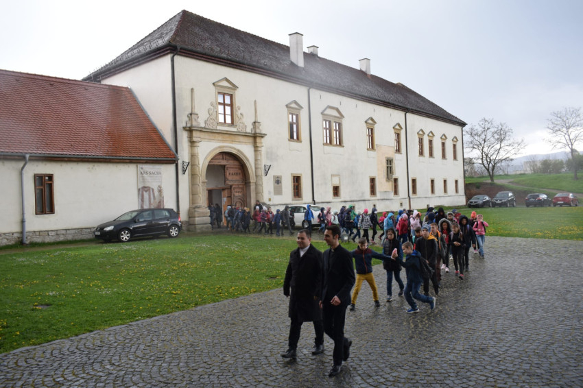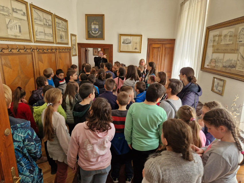 A püspöki arcképcsarnokban a gyerekek rögtön felismerték szülőfalujuk nagy szülöttjének és iskolájuk névadójának portréját.