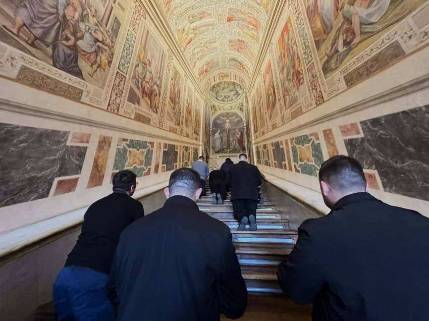 Éppen Hamvazószerda volt, amikor zarándoknapot tartottunk. A mobiltelefonunk lépésszámlálója szerint 17 kilométert gyalogoltunk a jeruzsálemi Szent Kereszt templom, Lateráni bazilika, a Szent lépcső, Santa Maria Maggiore, a falakon kívüli Szent Pál bazilika érintésével, de még a Szent Kelemen-bazilikát is sikerült meglátogatni. Persze az első nap Szent Péter sírjánál kezdődött. Úgy érzem, hogy minden szempontból nagyon sűrű programunk volt, és büszke vagyok a növendékekre, hiszen minden reggel hősiesen korán keltek, majd egész nap mentünk, ők pedig zokszó nélkül, végig érdeklődést mutattattak, kérdéseket tettek fel. Az elöljárókkal is folyamatosan egyeztettünk, és úgy érzem, hogy mindez számukra is nagy érték és ajándék. Sőt még számomra is, hiszen a dikasztériumoknál jómagam is hallottam olyan dolgokat, amelyek kapcsán be kellett ismernem, rám is rám fér a képzés, nekem is folyamatosan tanulnom kell. El is határoztam, hogy további ehhez hasonló tanulmányutakra is sor kerül majd, mert ez fontos.
