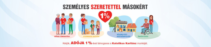 A szervezet munkájának előmozdítására most a személyi jövedelemadó (SZJA) 1%-ának felajánlásával is van lehetőség, a részletekről a karitasz.hu/egyszazalek oldalon tájékozódhatnak az érdeklődők.