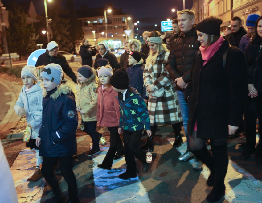 A lampionos felvonulásra az iskola hagyományának megfelelően nemcsak a Szent László-iskolába járó gyermekeket és szüleiket, de az óvodásokat is nagy szeretettel és kis ajándék lámpásokkal várták.
