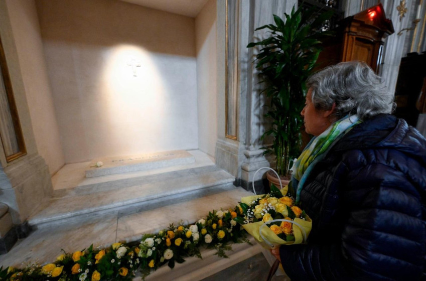 Carmelina lassan lépdelt, letette a virágokat, és sírva nézte a fényt, amely megvilágítja a Jó Pásztor keresztjét, és tükröződik a márványból faragott Franciscus feliratban. Csokrát már március 23-án is – a Szentatya kérésére – a Santa Maria Maggiore-bazilikában, a Salus Populi Romani Szűzanya-kegyképnél helyezték el.