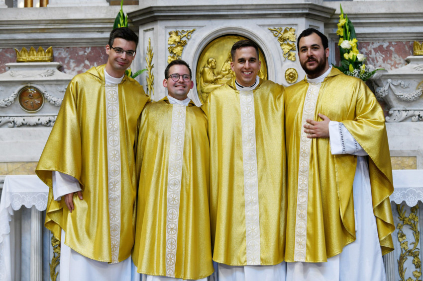 Négyük közül hárman egy helyen tanultak [esztergomi Érseki Papnevelő Intézet, míg Riesz Benedek a Köponti Papnevelő Intézet növendéke volt – a Szerk.], ők együtt érkeztek a beszélgetésre: vidám társaságot fogadtunk a szerkesztőségben szentelésüket megelőzően, egy hétfő délelőtt. Három élénk fiatal, tele mosollyal, lendülettel. Ők az Esztergom-Budapesti Főegyházmegye papnövendékei voltak, akik diakónusi évüket töltötték Budapesten. Látszik, hogy megvan köztük az összhang, olyan papi testvériség, barátság, ami hivatásbeli elkötelezettségüknek mély, szilárd alapot ad.
