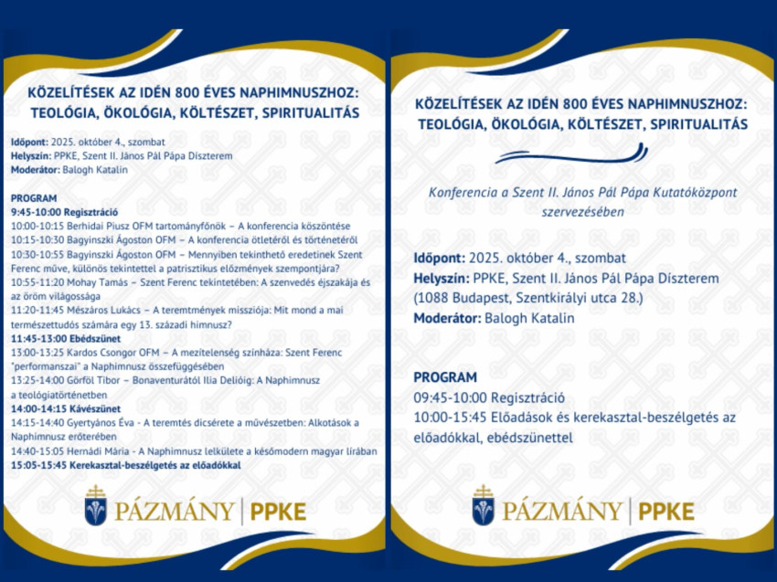 – Ennek szellemében október 4-én Közelítések az idén 800 éves Naphimnuszhoz címmel konferenciát szerveznek a Pázmány Péter Katolikus Egyetemen. Mit érdemes tudni róla?