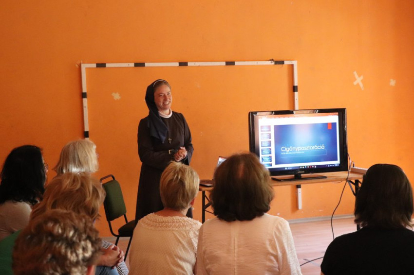 Judit nővér, az Elfogadlak Alapítvány elnöke bemutatta a cigánypasztorációs munkájukat, beszélt a kihívásokról, nehézségekről és arról, hogyan tartják meg a reményt a nehéz körülmények között élő emberekben.