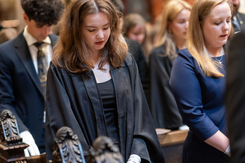 Az ünnepség elején Kuminetz Géza, a PPKE rektora vezetésével a Szent István-bazilika oltára elé vonultak az egyetem és a bölcsészkar vezetői: Szabó István rektorhelyettes, Birher Nándor Máté, a PPKE BTK dékánja, Nemesi Attila László tanulmányi dékánhelyettes, Kőszeghy Miklós tudományos és kutatási dékánhelyettes és Major Balázs külügyi és társadalmi kapcsolatokért felelős dékánhelyettes.