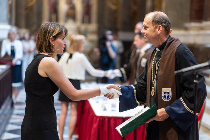 Hegyi László elmondta: „a középkorban az egyházi intézmények úgynevezett hiteles helyek voltak, joguk volt oklevelek kiállítására. Ma, amikor az Esztergom-Budapesti Főegyházmegye társszékesegyházában átveszik a végzettségüket tanúsító oklevelüket, amelyet a PPKE állított ki, szintén egy hiteles helyről kapják a diplomájukat. Ezt a hiteles helyet Pázmány Péter 390 évvel ezelőtt a kereszténység időtálló értékeinek képviseletére, tanítására alapította. Az egyetem ma sem tehet mást, s ezt minden oktatónak és hallgatónak tudnia kell és tiszteletben kell tartania, amikor mérlegeli, hogy csatlakozzon-e a Pázmány közösségéhez.”