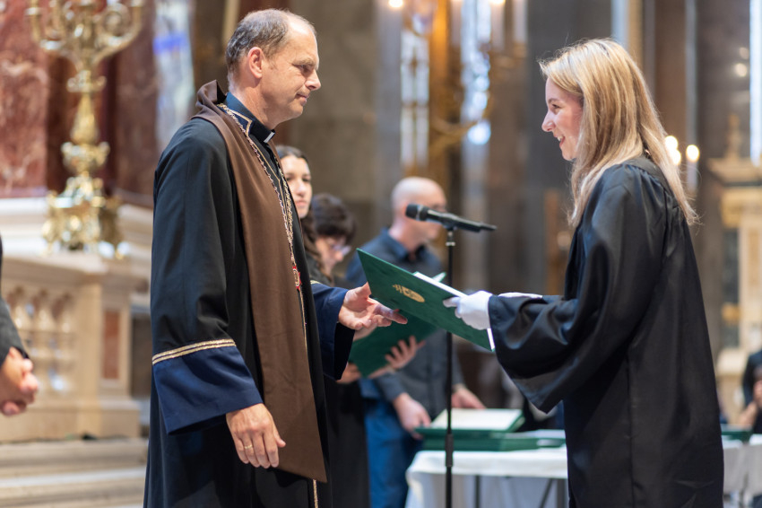 A dékán beszédében, mintegy üzenetként leszögezte: „Ne feledjék, mindig van mód megtérésre, bűnbánatra és bűnbocsánatra! Döntéseikben jussanak eszükbe Boldog Apor Vilmos édesanyjának szavai: »Ha nem tudod mit válassz, válaszd a nehezebb utat!«”.