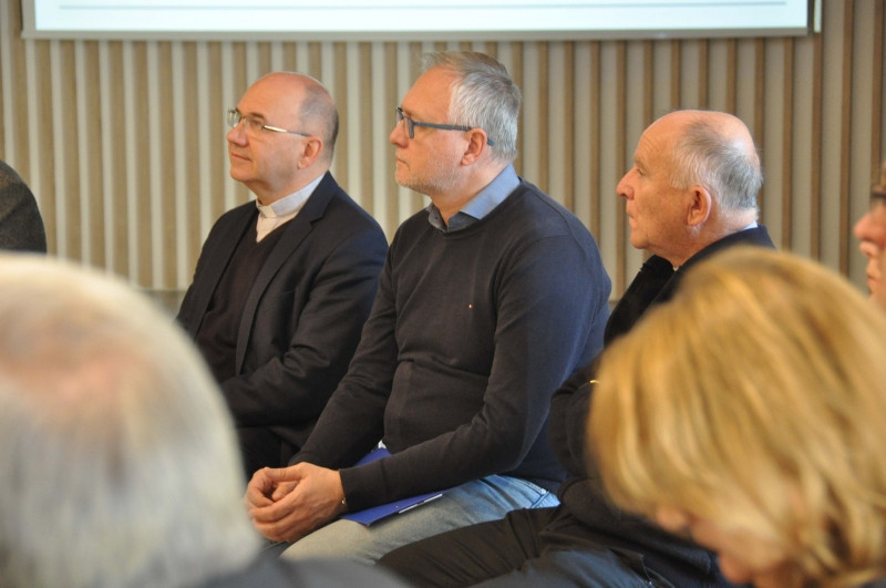 Ezt követően Paszternák Tamás pasztorális helynök, valamint Puskás Balázs, a Váci Egyházmegyei EKIF-főigazgatója fogalmazták meg gondolataikat az iskolalelkészséggel kapcsolatban. „Régóta gyakoroljuk ezt a műfajt, több mint 30 éve indult el az első iskolánk, és sok fantasztikus együttműködést, virágzó iskolát látunk – kezdte a pasztorális helynök. – Aztán növekedtünk, egyre több intézményünk lett, és egyre több gyermeket érint már a munkánk. Van az a pont, amikor eljön az evangéliumi rendszerezés szükségessége. Szeretnénk, hogy a Lélek által egyre jobban megértsük, mi a közös feladatunk az iskolákban.”
