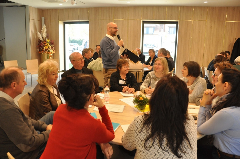 A bevezetés után kiscsoportos munka következett. Iskolalelkészek és intézményvezetők vegyes csoportokban fogalmazhatták meg kérdéseiket, dilemmáikat, amelyekre kerekasztal-beszélgetés keretében a vezetőségtől kaptak választ.