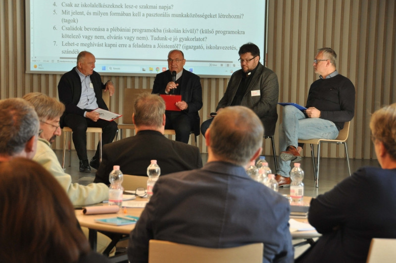 A vezetők beszéltek továbbá arról is, hol vannak a gyakorlatban az iskolalelkészi és intézményvezetői munka határai, és mit lehet tenni abban az esetben, ha a település plébánosa nem nyitott arra, hogy együttműködjön az iskolával és az intézményvezetővel.