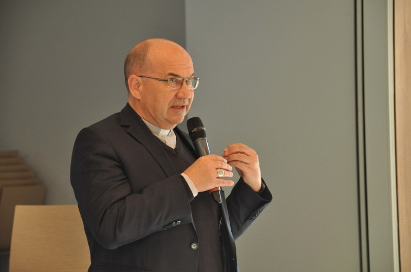 Puskás Balázs háláját fejezte ki minden jelenlévő felé, azért, hogy érzik a szakmai találkozó és az együttműködés fontosságát. A főigazgató az iskolalelkészek felelősségéről és jogköréről beszélt. „Az iskolalelkész őrzi a katolikus szellemiséget, a hit tisztaságát. Pásztorként van jelen, tehát az iskolai közösség tagjai úgy számíthatnak rá, mint aki Istenhez vezeti és meghallgatja őket. Ő szeretettel fordul feléjük, koordinál és együtműködik az igazgatóval.”