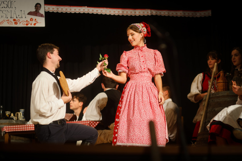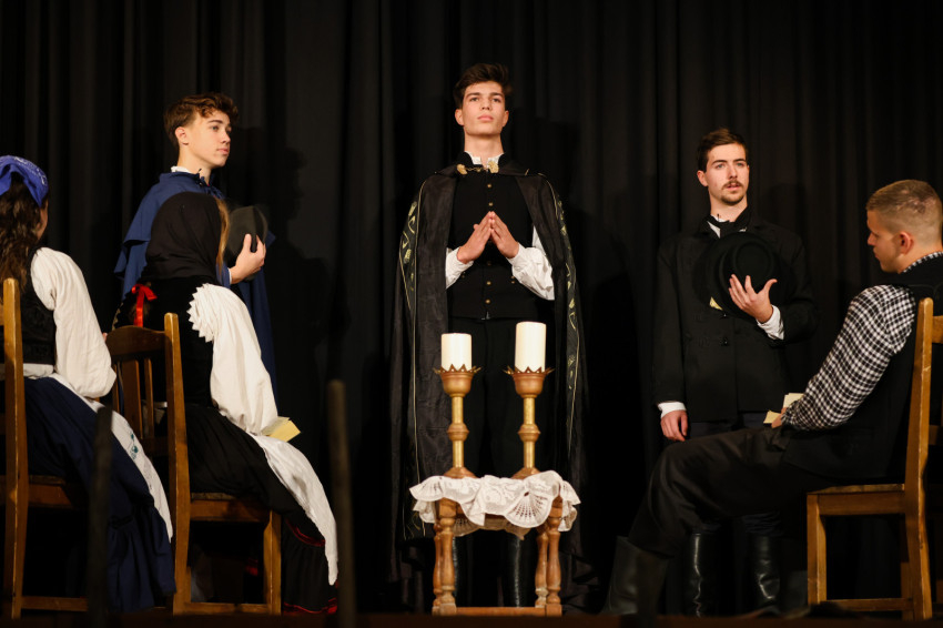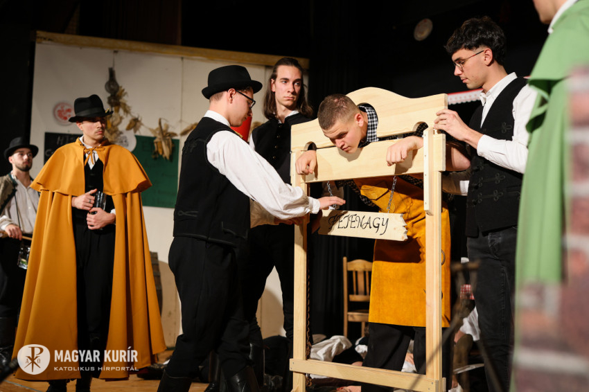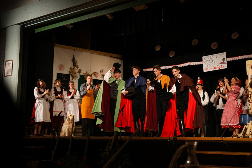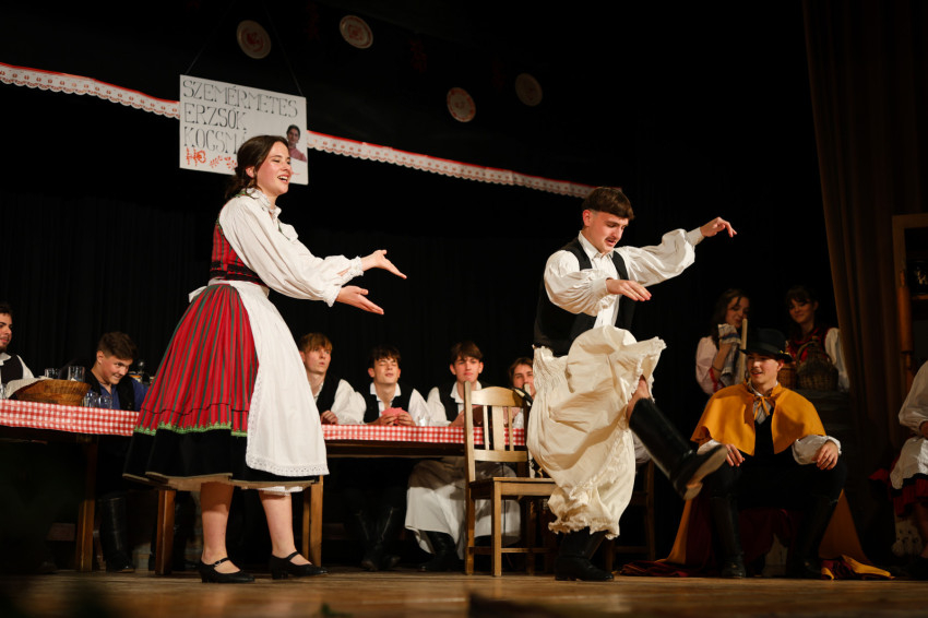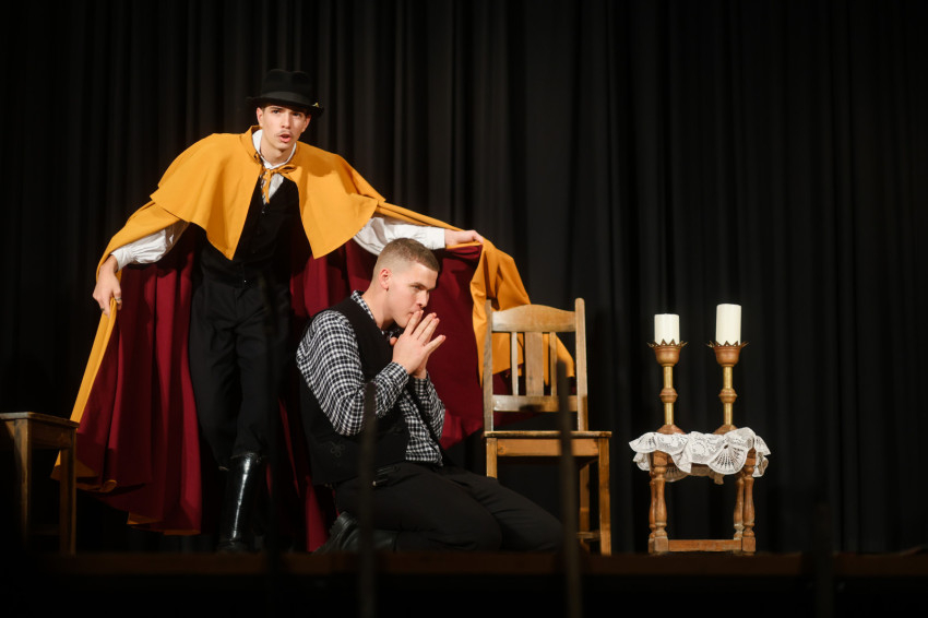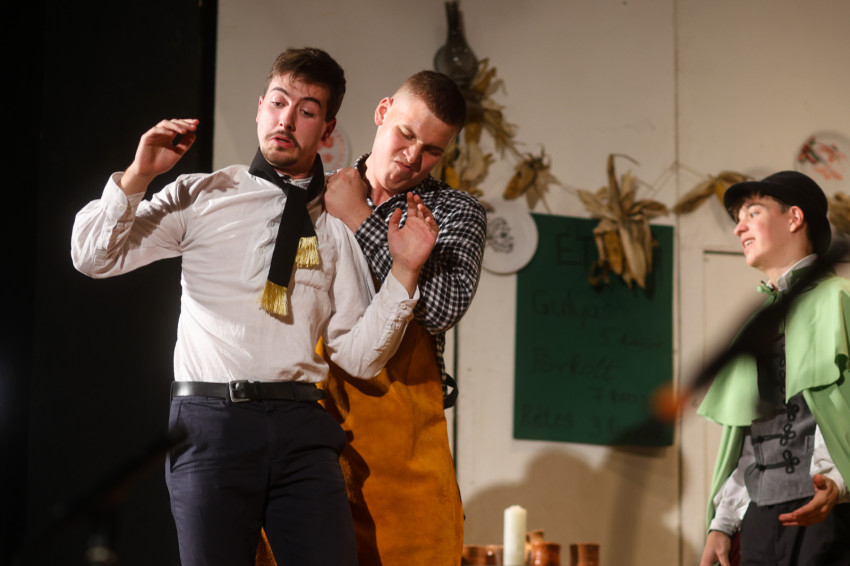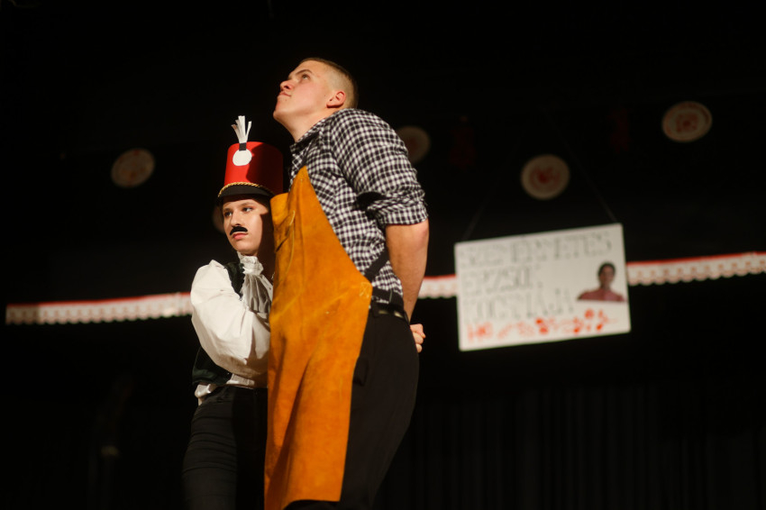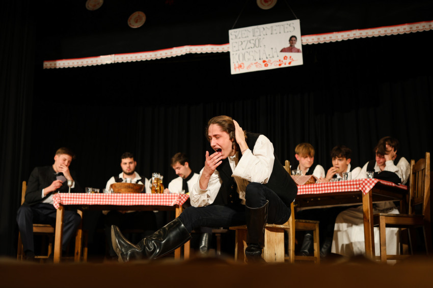 Idén merész volt a darabválasztás: a három 12. osztályból verbuválódott alkalmi társulat Petőfi Sándor műfaj- és stílusparódiának szánt darabját, A helység kalapácsa című vígeposzt vitte színre.