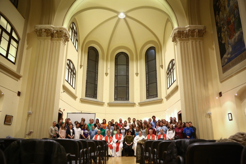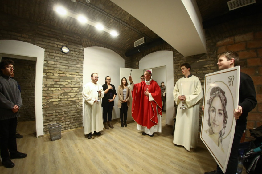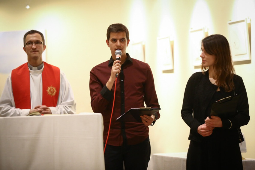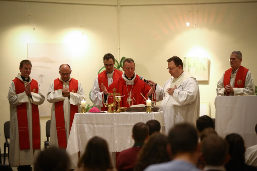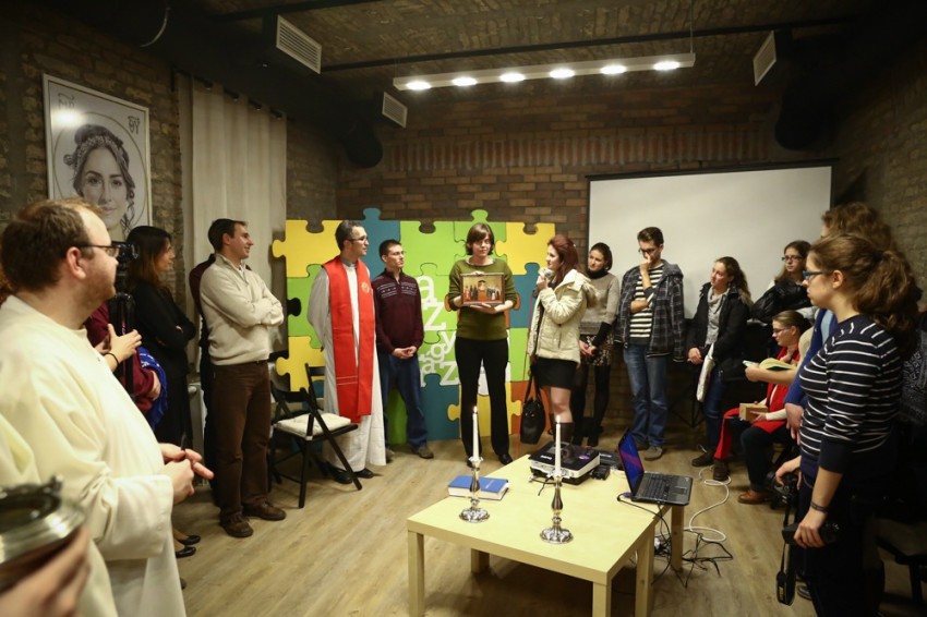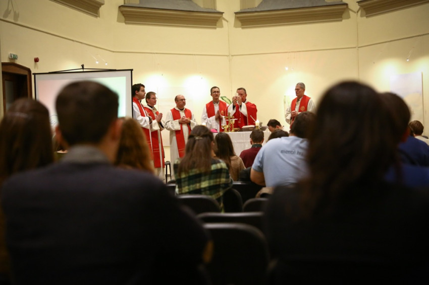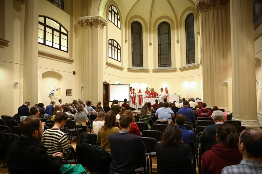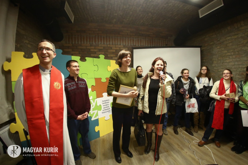 Sajgó Szabolcs jezsuita szerzetes, a Párbeszéd Háza igazgatója köszöntötte a közösségi térnek otthont adó intézmény nevében az egybegyűlteket. Kifejezte örömét, hogy megvalósul az együttműködés, és a váci egyházmegyei fiatalok otthonra lelnek a Párbeszéd Házában. Elmondta, hogy párhuzamosan zajlik a házban egy beszélgetés a párizsi eseményekről és kérte az összegyűlt fiatalokat, a szentmisén imádkozzanak a világért, hogy mint a szülési fájdalom után, valami jobb szülessen ebből a nehéz helyzetből.