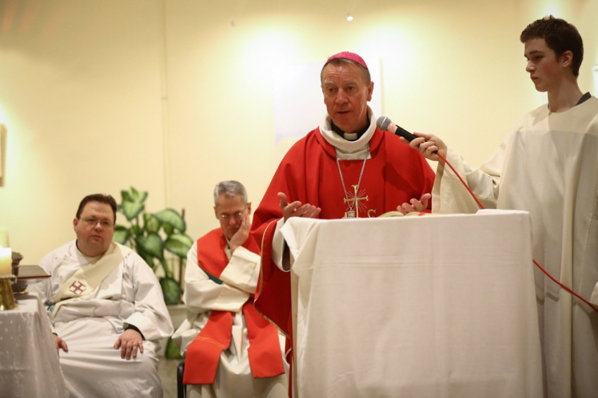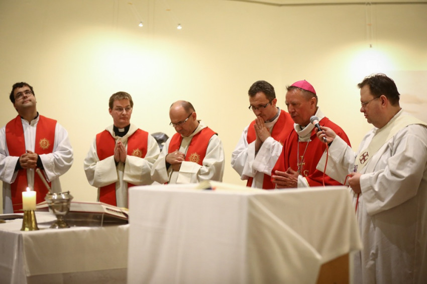 A váci megyéspüspök utalt Alexandriai Szent Katalin vértanú sorsára, akinek az emléknapján a szentmisét bemutatták. A vértanúság közel került a mai ember életéhez: hallottunk a Líbiában meggyilkolt kopt keresztényekről, a kenyai egyetemen meggyilkolt keresztény fiatalokról. Alexandriai Szent Katalin meghalt a hitéért. Az elbizakodott birodalom azt hitte, ha megöl embereket, utána minden úgy lesz, ahogyan akarja. A kereszténység története ezzel ellentétben a vértanúk hősi áldozatából indul. Krisztus kereszthalála feltámadást hozott nekünk. „Nem tudjuk, milyen világ vár rátok, de új történelmi korszak kezdődik, ahol felértékelődik a hitünk, az örök életbe vetett reménységünk, krisztusi küldetésünk” – buzdította Beer Miklós erőteljes szavakkal a fiatalokat. Összekapcsolta ezeket a súlyos gondolatokat azzal, hogy egy olyan pont jött létre a Párbeszéd Házában, ahol találkozhatnak, bátoríthatják egymást és együtt imádkozva találkozhatnak az élet forrásával, Krisztussal. „Az Úristen számít rátok, képessé tesz benneteket, hogy ebben a zűrzavaros világban a föld sója, a világ világossága, a hegyre épített város legyetek” – erősítette meg buzdítását a fiatalok felé.