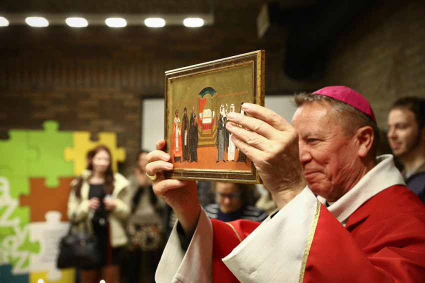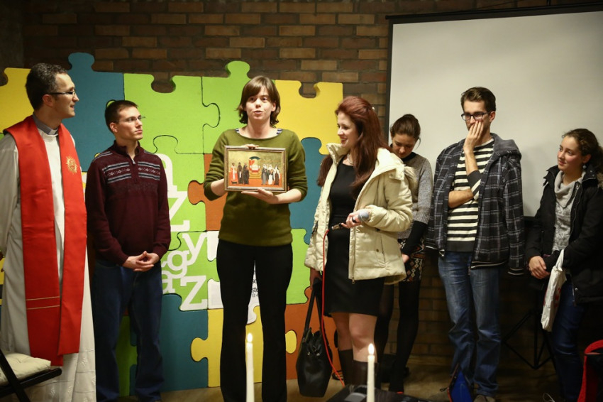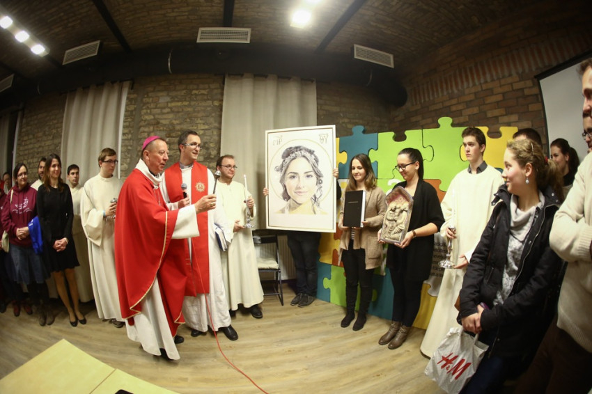 A kép bemutatását követően püspök, a koncelebráló papok, a ministránsok és a Váci Egyházmegye ifjúsági közösségei énekelve vonultak át az épület alagsorában helyet kapó közösségi térbe, a Mentepontba, ahol elhelyezték Balázs András képét, Petrás Mária kerámiáját a szent családról, és a Renovabis ajándékát, az Európa hat védőszentjét ábrázoló ikont. Az este agapéval, beszélgetéssel folytatódott, majd imádsággal ért véget a Mentepontban.