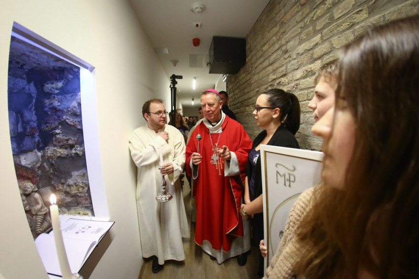 Farkas László, a Váci Egyházmegye ifjúsági referense a szentmise előtt elmesélte, hogyan jött létre meg a Mentepont a Renovabis Alapítvány támogatásával. Megosztotta a fiatalokkal, hogy találtak egy különleges téglát, amelyen a magyar címer látható és Mária, királynői koronával. Ezt a téglát Szabolcs atya megőrizte számukra, az alagsori helyiségben egy ablakmélyedésben helyezték el, mellé teszik le a lelkiségi dokumentumokat, amelyeket a megyéspüspök jóváhagyott. A Mentepont ajándékba kapott egy Petrás Mária által készített kerámiaképet is, amely a szent családot ábrázolja.