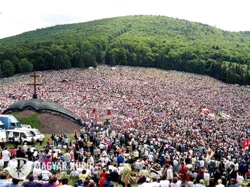 Az ünnepi szentmise 12.30-kor kezdődik a Hármashalom-oltárnál (a Kis- és Nagysomlyó-hegy közötti nyeregben).