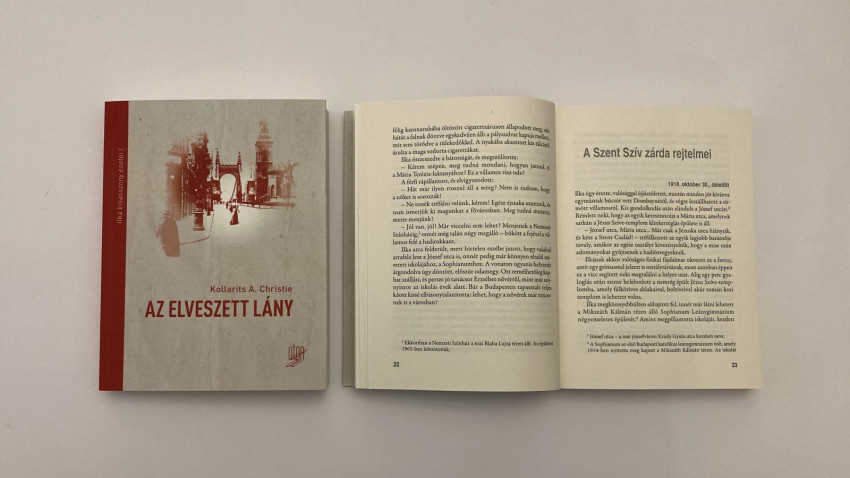 1918. október 29. Ezt a napot Jánosy Ilka élete végéig nem fogja elfelejteni. Aznap szökött el otthonról a nővére, és aznap indult el a nyomozói karrierje. A Monarchia széthullóban, a spanyolnátha kegyetlenül szedi áldozatait, Ilka azonban az idővel versenyt futva, kétségbeesetten próbálja felkutatni Annát. Reménytelennek tűnő vállalkozásában váratlan segítőkre talál egy jóképű rendőrfelügyelő, Eperjessy Ádám és egy titokzatos apáca, Erzsébet nővér személyében. Lehetséges, hogy Anna szökése kapcsolatban áll egy veszélyes szélhámos terveivel? És ki a felelős a Vígszínház csinos színésznőinek eltűnéséért? Kollarits A. Christie (Kollarits Krisztina) Az elveszett lány című, sodró lendületű krimijét olvasva képzeletben bejárjuk a korabeli Budapestet, és különösen sokat bolyongunk az egykor Kis Vatikánnak is nevezett józsefvárosi Palotanegyedben. S miközben a főszereplők kalandról kalandra csetlenek-botlanak, és közben kicsit egymásba is gabalyodnak, olyan valós, korabeli személyekkel kerülnek kapcsolatba, mint Bús Jakab jezsuita tartományfőnök, Slachta Margit szociális testvér vagy épp Jászai Mari, a kor csodált színésznője.
