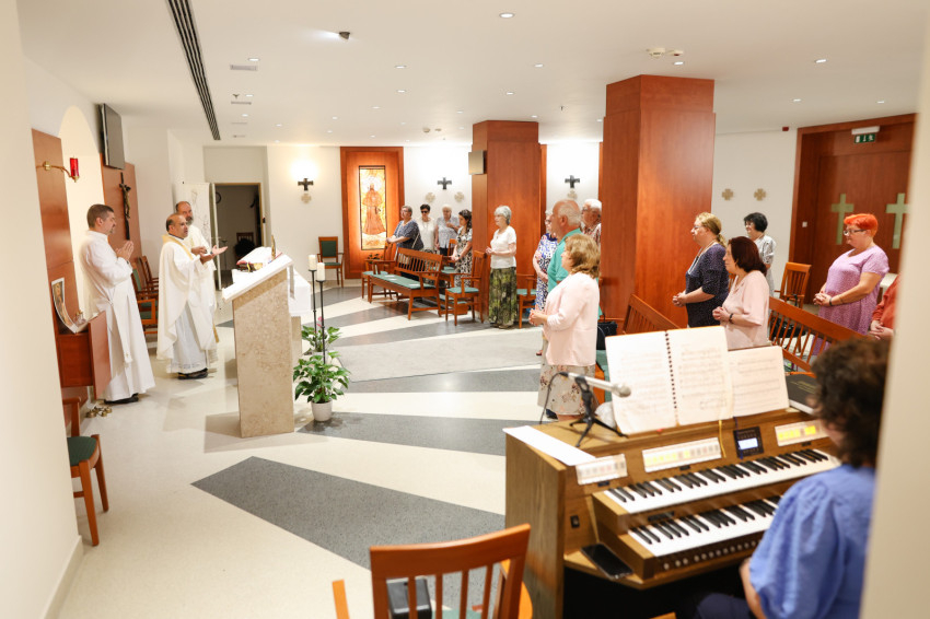 György Alfréd a kamilliánus lelkiséghez, családhoz tartozó orvosokat, ápolókat köszöntötte, külön Szathmári Miklós orvosprofesszort, akinek annak idején „megszületett a szívében a kápolna ötlete”. A provinciális bevezetőjében kitért arra is, hogy a búcsú alkalmával „búcsúzunk a bűneinktől”, megtisztítjuk a lelkünket. A szentmisét az összegyűlt imaszándékokon kívül felajánlották a dolgozókért, a betegekért és a Kárpát-medencében élő kamilliánusok jövőjéért, hiszen 120 év után éppen most zárják be a bécsi kolostort; a magyar alapítás, a nyíregyházi kolostor pedig jövőre lesz harmincéves.