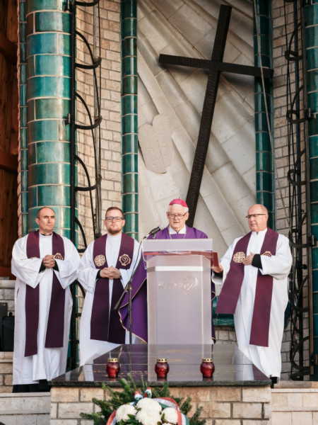 A főpásztor azokra emlékezett, akik sokat szenvedtek és halálukkal is fájdalmas sebeket hagytak hátra maguk után. Kiemelte, hinnünk kell abban, hogy Krisztus sírjának üressége, a húsvéti fény meg tudja törni a fájdalmat és a sötétséget, és be tudja gyógyítani a veszteség okozta sebeket. Arra hívta fel a figyelmet, hogy amíg élünk, szavainkkal és tetteinkkel is szeretnünk kell egymást, mert ha ezt elmulasztjuk, később nem tudjuk pótolni, s akkor sok szenvedést okozhatunk magunknak és a másiknak.