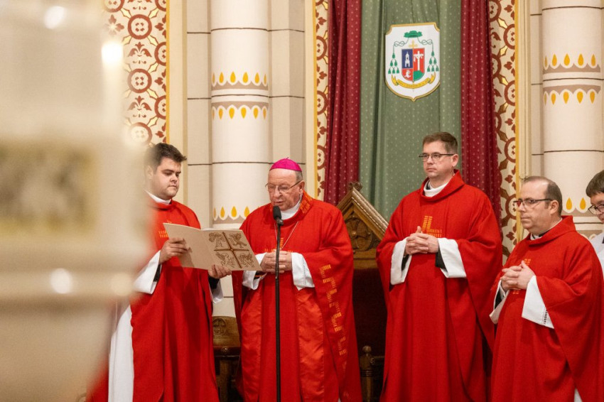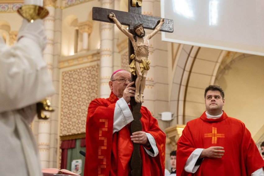 A nagypénteki szertartást Feketes Szabolcs Benedek püspök vezette a szombathelyi székesegyházban.
