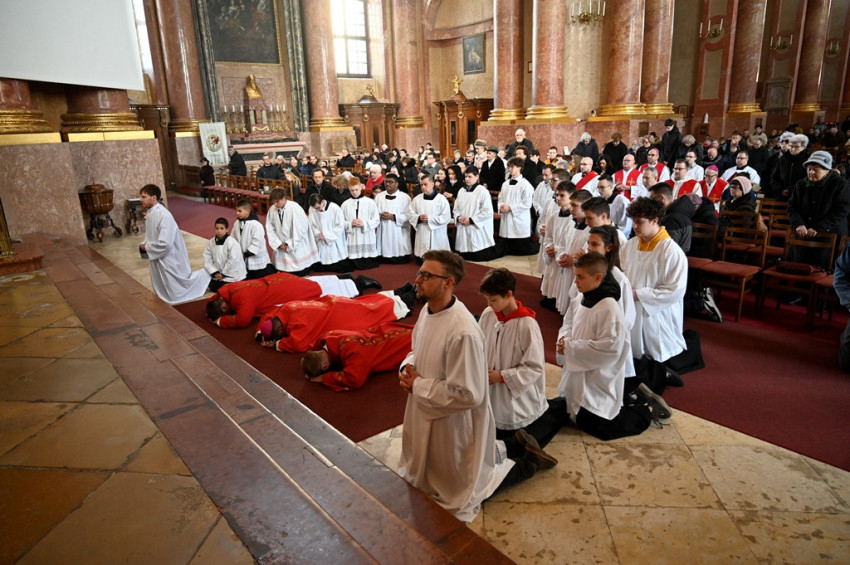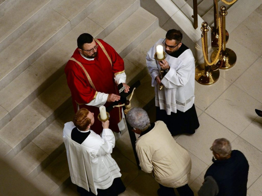 A nagypénteki szertartást Martos Levente Balázs esztergom-budapesti segédpüspök vezette az esztergomi Nagyboldogasszony- és Szent Adalbert-főszékesegyházban.