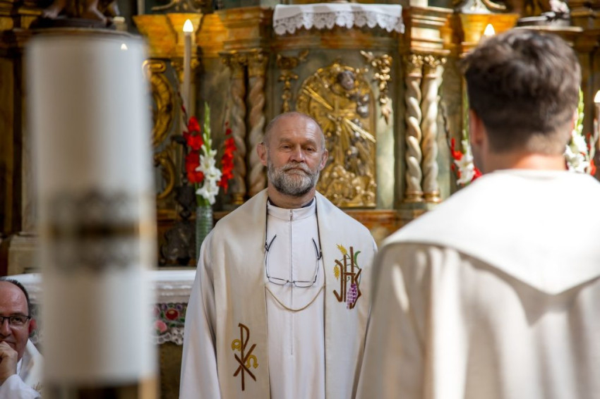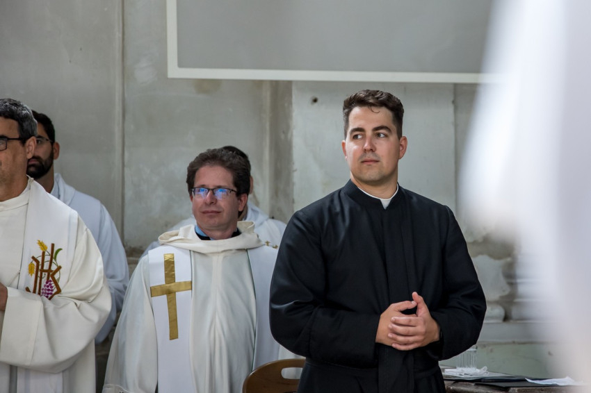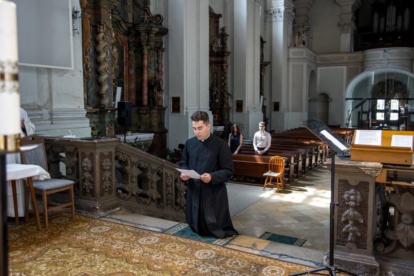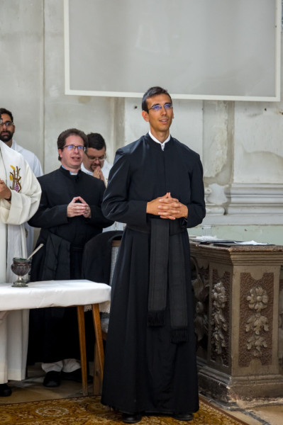 A szentmisében tette le első szerzetesi fogadalmát Turi Gellért. Jézus három meghatározással is azonosítja magát az evangéliumban: a gyermekekkel, a szegénység különböző formáival és a hiteles tanúkkal. E három szól a piarista hivatásról, a kalazancius küldetésről is. „Szerény büszkeséggel mondjuk azt, hogy Kalazanci Szent József megtalálta számunkra a legjobb formáját Krisztus követésének. Erre hívunk téged, erre küld téged a rendalapítónk – fogalmazott szentbeszédében a tartományfőnök. – A rendi közösség ad erőt és gazdagságot nekünk, hogy adni tudjunk a körülöttünk lévőknek.”
