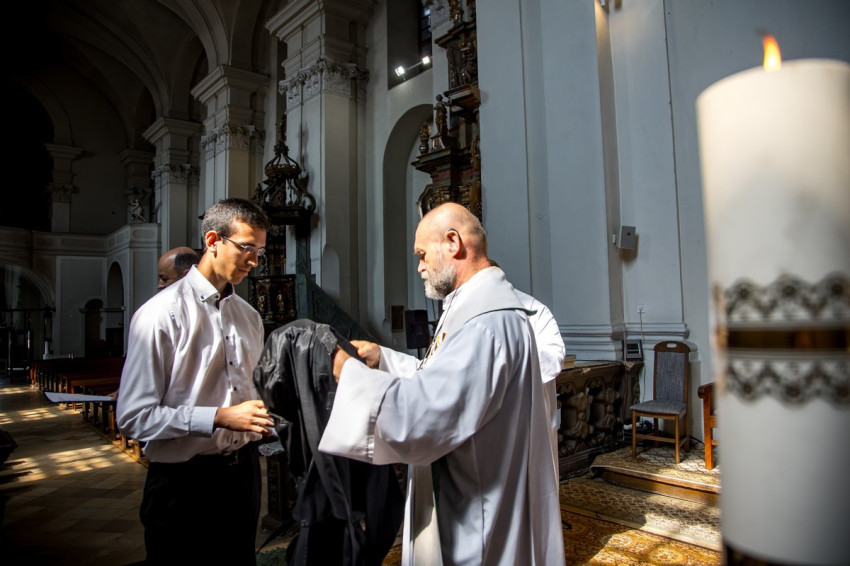 A szentmise előtt Morvai Gábor öltötte magára a piarista szerzetesek öltözékét, a reverendát, s ezzel megkezdi a noviciátust, amely a szerzetesi kezdeti képzés második szakasza. Ezalatt a novíciusok beavatást nyernek a szerzetesi életbe egy szerzetesi közösség tagjaként. „Ez a szertartás és a most következő év segítsen téged a szabad döntés meghozatalában, hogy jobban halld az Úr hangját és el tudj köteleződni az Úr követésére piaristaként” – mondta Zsódi Viktor tartományfőnök.
