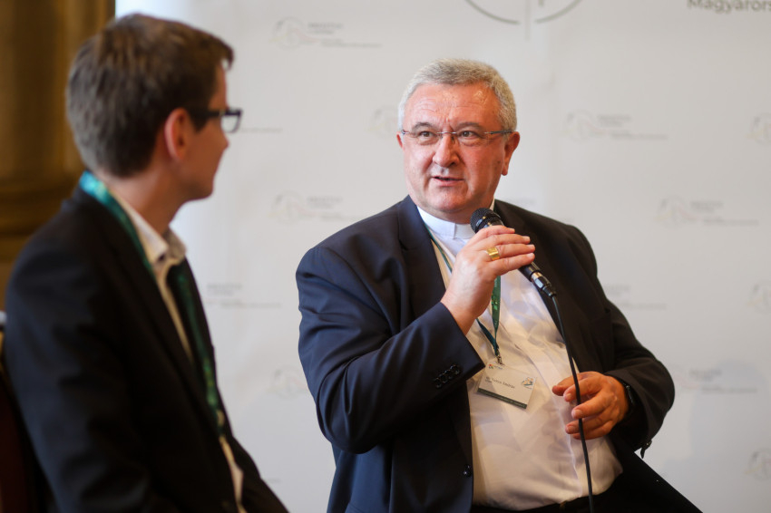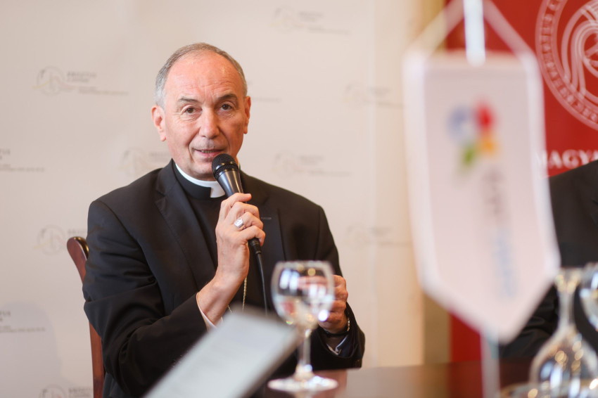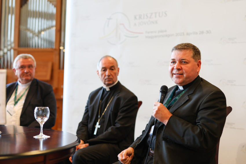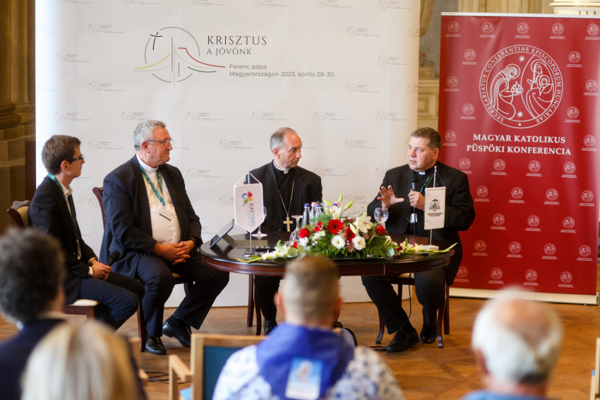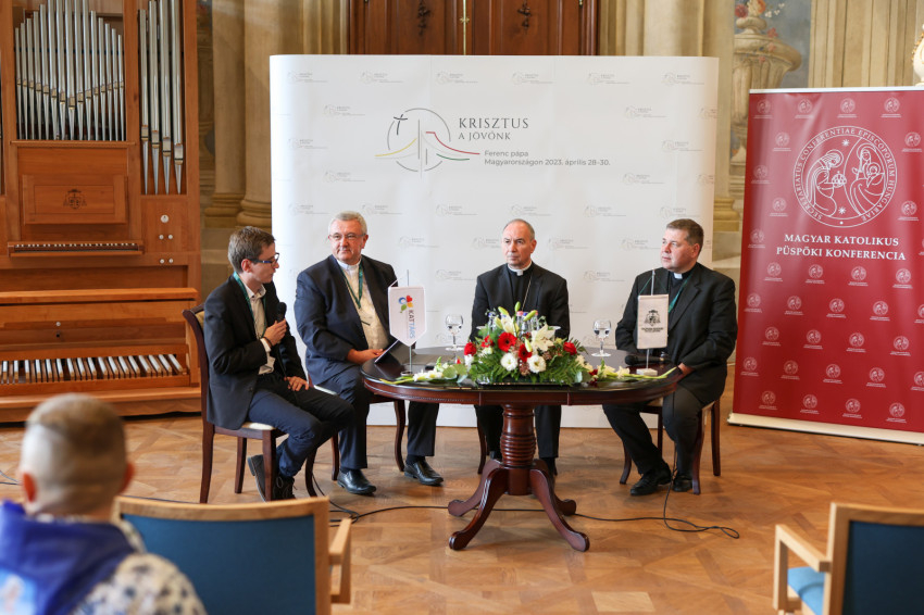 Veres András győri megyéspüspököt, a Magyar Katolikus Püspöki Konferencia (MKPK) elnökét, Udvardy György veszprémi érseket, a testület alelnökét és Tóth Tamást, a konferencia titkárát, a pápalátogatás koordinátorát Martí Zoltán újságíró kérdezte az érseki palota dísztermében.