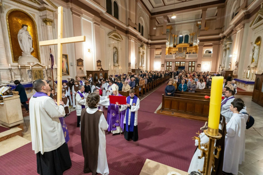 „A nagyböjti időszak arra szólít fel mindannyiunkat, hogy legyünk egymás iránt szolidárisak. Jézus minket a kereszten váltott meg, a keresztben van az üdvösségünk és erőforrásunk” – emelte ki Mezei András, a Kis Szent Teréz Plébánia plébánosa. A plébános rámutatott, hogy a két testvérplébánia, a Fő téri és a Kármel mellé tavaly után idén még több más résztvevő csatlakozott.