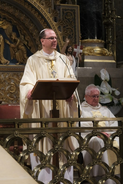A szentmisét Bérczi Bernát zirci apát mutatta be, aki maga is éppen az első egyházi osztályban kezdte meg tanulmányait a gimnáziumban, és ciszterci szerzetessége felé ebből a közösségből indult el.