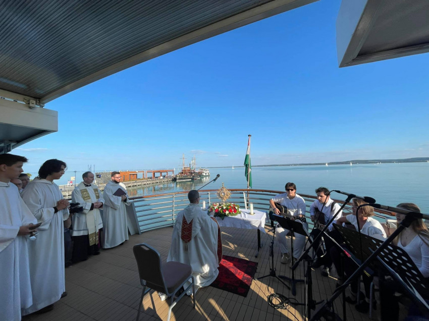 A Siófok nevű katamaránon az út közben zenés szentségimádás zajlott. Az 1938-as eseményhez hasonlóan az Eucharisztiát most is számtalan hajó – többek között a híres Kisfaludy és a Jókai, valamint vitorlások – kísérte útján.