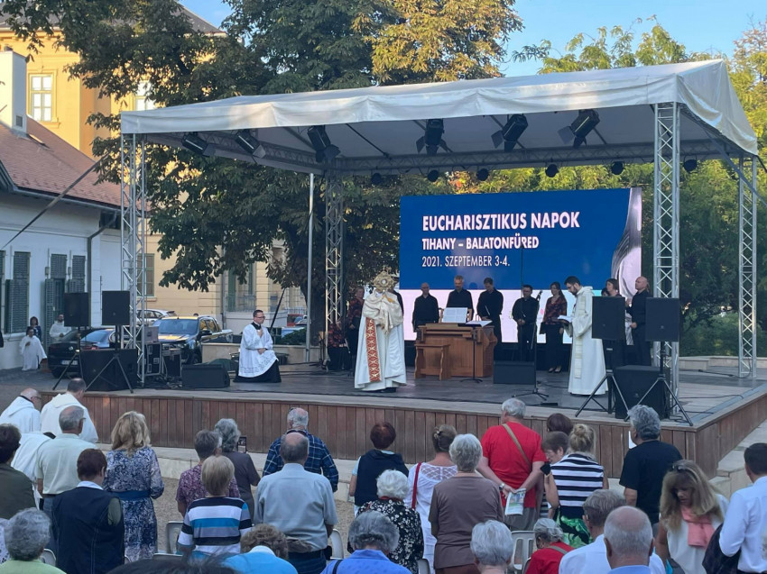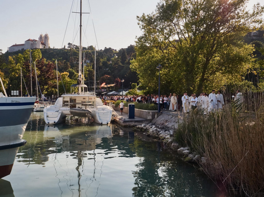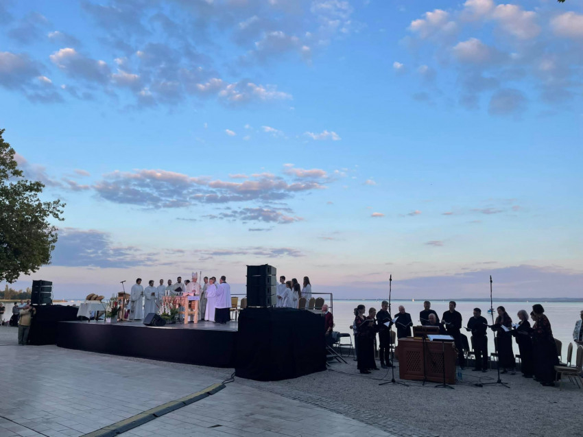 Balatonfüredre érkezve a Tagore sétányon Udvardy György érsek mutatott be szentmisét.