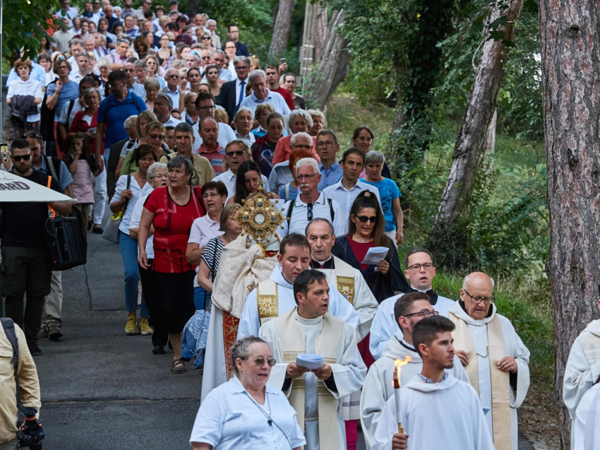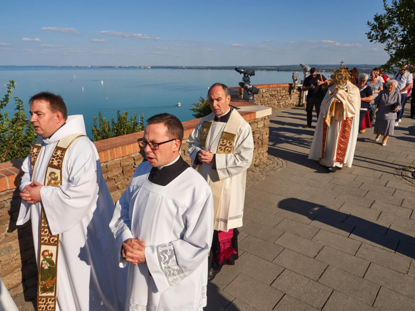 A szentségimádást Mihályi Jeromos tihanyi perjel vezette. A szerzetes atya mellett Udvardy György veszprémi érsek, Tornavölgyi Krisztián érseki irodaigazgató, Megyesi Ferenc érseki szertartó, valamint a hívek sokasága kísérte imádságával a díszes monstranciában lévő Eucharisztiát.