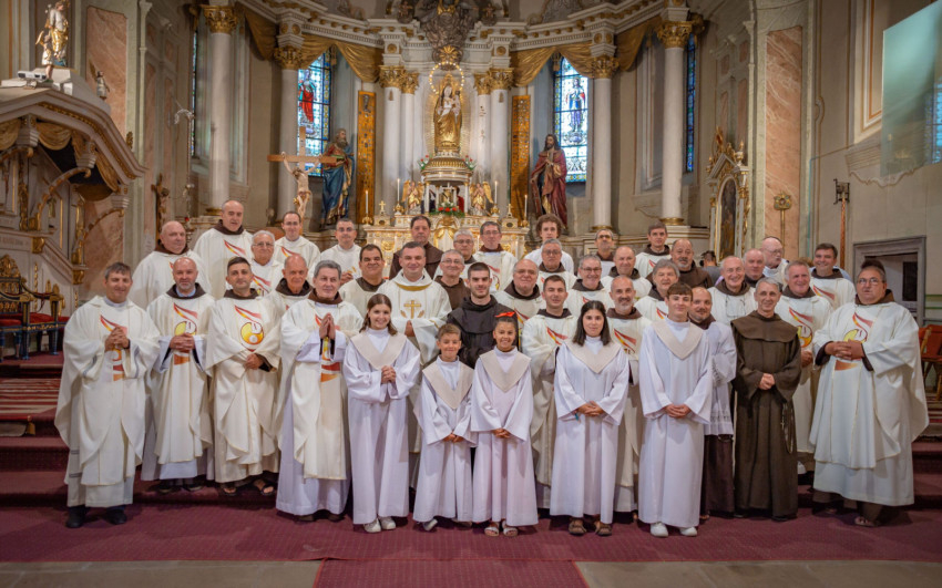 „A nagy ferences centenárium második évében teszed le a fogadalmadat, amikor arra emlékezünk, hogy szeráfi atyánk 800 évvel ezelőtt Alverna hegyén megkapta Jézus öt szent sebét, szeretettől lett megpecsételve, Krisztus, a szegletkő egészen magához ölelte. Életedet Krisztusra alapozd, a sziklára. Jézus homokra épített ház hasonlata érdekes és sokatmondó. Úgy tűnik, hogy a sziklára épített épület stabilabb, az építője pedig bölcs. A homokra épített ház ingatag, építője pedig oktalan. Valójában mindkét ház stabilnak tűnik, amikor szép az idő, amikor béke van. Csak akkor derül ki, melyik mennyit ér, amikor jön a vihar, feltámad a szél, amikor az ár nekizúdul a ház falának. Akkor derül ki, mennyire épül Krisztusra és Krisztusba az életem, amikor kellemetlen helyzetbe kerülök, és nem sajnálom az időt Istentől és a közösségtől, hogy jelenlétemmel gazdagítsak, formáljak, élővé tegyek egy gazdag örökséget, amely stabilitást ad identitásunknak. Ezt tedd szeráfi atyánk példájára, aki belépett Isten szeretetébe, amely lépés magában hordozza azt az evangéliumi paradoxont, hogy amikor érte meghalunk, akkor kezdünk el igazán érte és neki élni” – tette hozzá az ünnep szónoka.