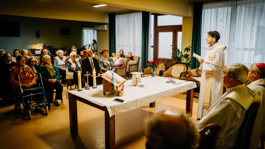 A nagyváradi Szent Márton Idősotthonban bemutatott szentmisén a főpásztor emlékeztetett rá: a kápolna védőszentje a 4. században élt Tours-i Szent Márton püspök, aki fiatalon tért át a kereszténységre, életét pedig csodák és gyógyulások kísérték. Mint mondta: fontos, hogy maradjunk a közelében, gondoljunk tetteire, kövessük őt. Kitért arra is, hogy Ferenc pápa még 2024 végén hirdette meg a szentévet, amit a nagyváradi egyházmegye egy, az egyházmegyét bejáró zarándoklattal ünnepelt. A missziós kereszt így érkezett el a Caritashoz is november folyamán. „Ferenc pápa arra kért, legyünk a remény hordozói. Ezért ne csak azt vegyük észre, hogy az élet nehéz és kilátástalan, hanem azt is, hogy Isten azért teremtett bennünket, hogy részesítsen az örök boldogságban.