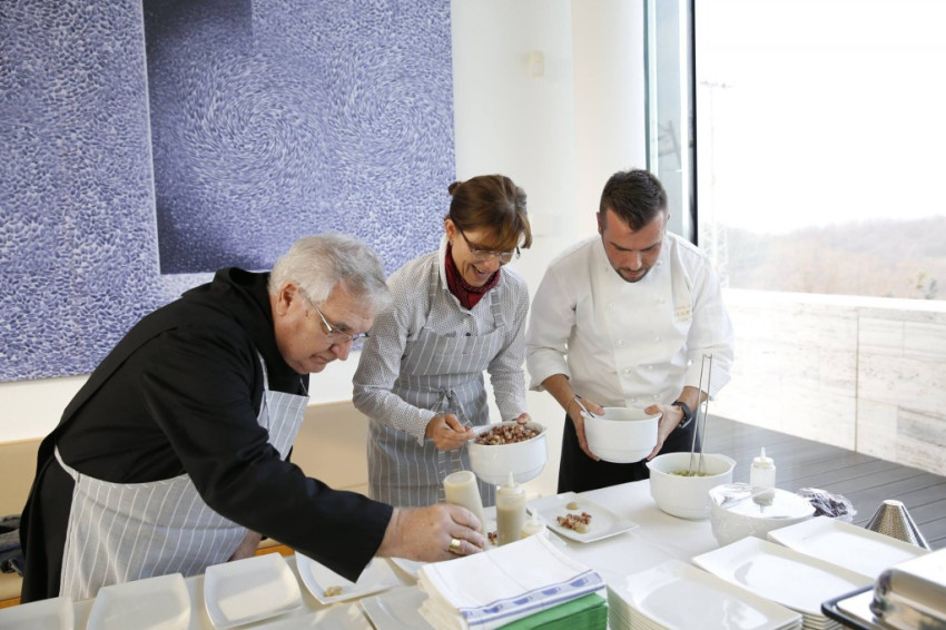 A kiadvány bemutatóján a tehetséges séf három különleges fogással kedveskedett a megjelenteknek, így Várszegi Asztrik főapátnak, valamint Lévai Anikónak, aki a Magyar Konyha szerkesztőbizottságának elnökeként vett részt az eseményen.