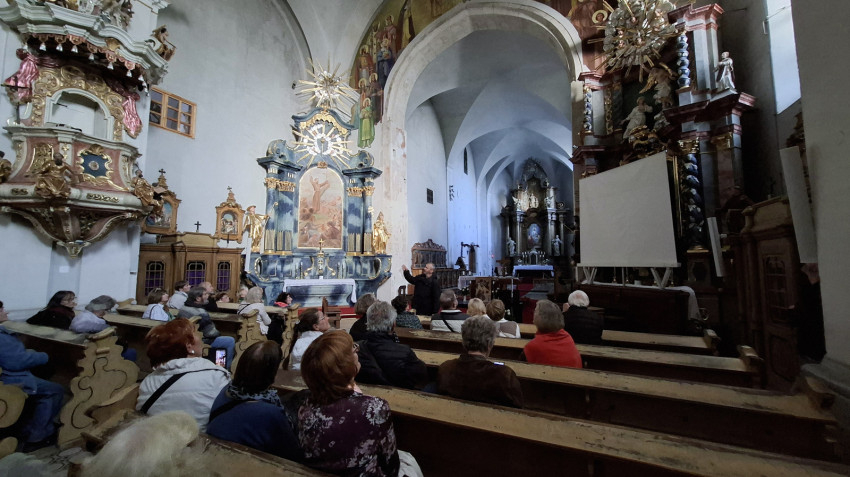 A túra díszvendége volt Deák Ilona festőművész, aki férjével, Bráda Tiborral együtt korszakos alkotója a jelenkori magyar képzőművészetnek. Bráda Tibor sajnos két évvel ezelőtt meghalt, így megkezdett üvegablakos munkáit, megbízásait felesége és lánya fejezi be. Benczúrfalván néhány héttel ezelőtt áldotta meg Varga Lajos segédpüspök a fogadalmi kápolnát, amit báró Lipthay Antal és felesége, Erzsébet építtetett. Bráda Tibor és Ilona ennek a kápolnának az üvegablakait is együtt készítették. Meglátogattuk a Benczúr Gyula Rajziskolát is, amit szintén a már említett Lipthay házaspár hozott létre: megvettek, majd felújítottak egy szép nagy parasztházat, és egy alapítvány segítségével működtetik, amelyet Pro Arte et Natura néven ismerhetünk.